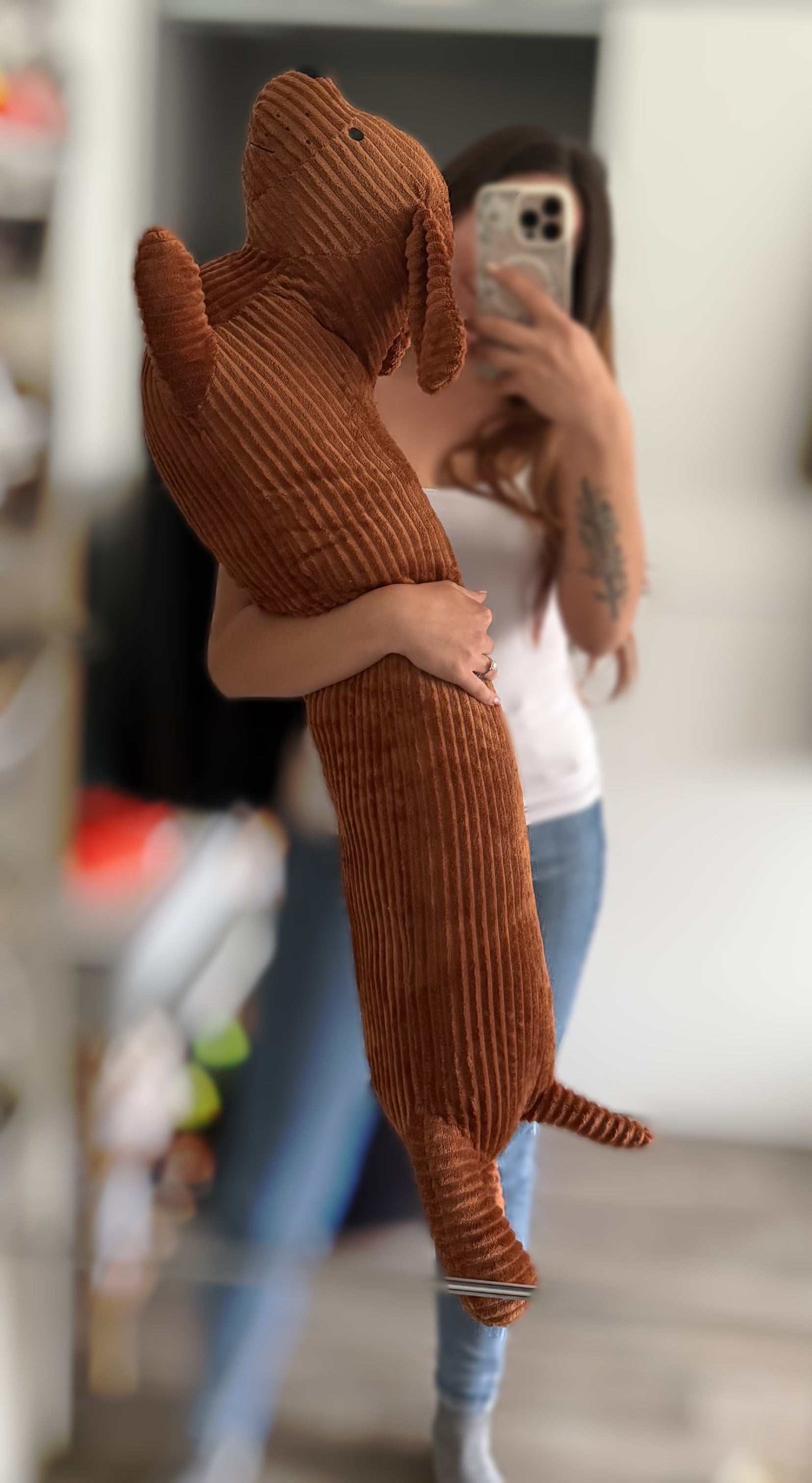 Unser superweiches Dackel-Kissen (110 cm) ist der perfekte Begleiter zum Kuscheln, Schlafen oder Dekorieren! Gefüllt mit hochwertiger PP-Baumwolle und bezogen mit weichem Plüsch. Waschbar und pflegeleicht. Ob als Geschenk oder für dich selbst – dieser Dackel bringt Freude ins Haus!