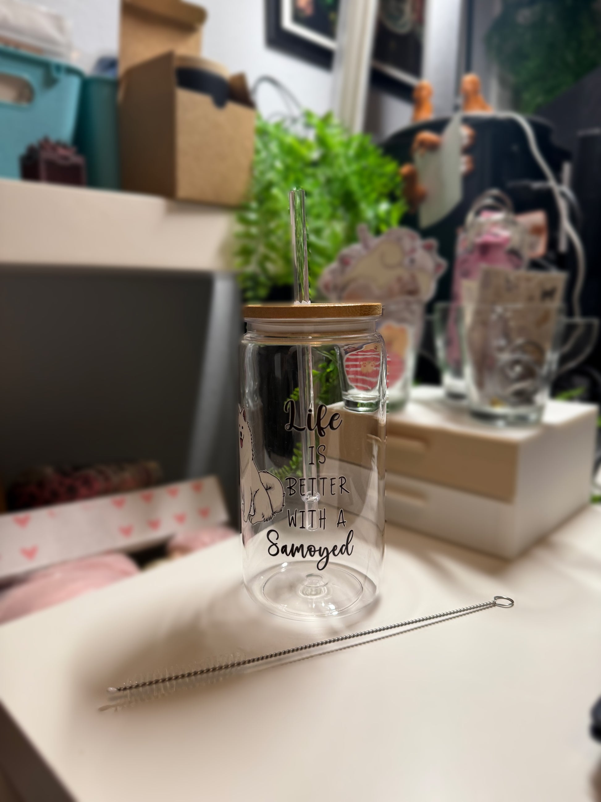 Becher mit Strohhalm und Strohhalm-Bürste.