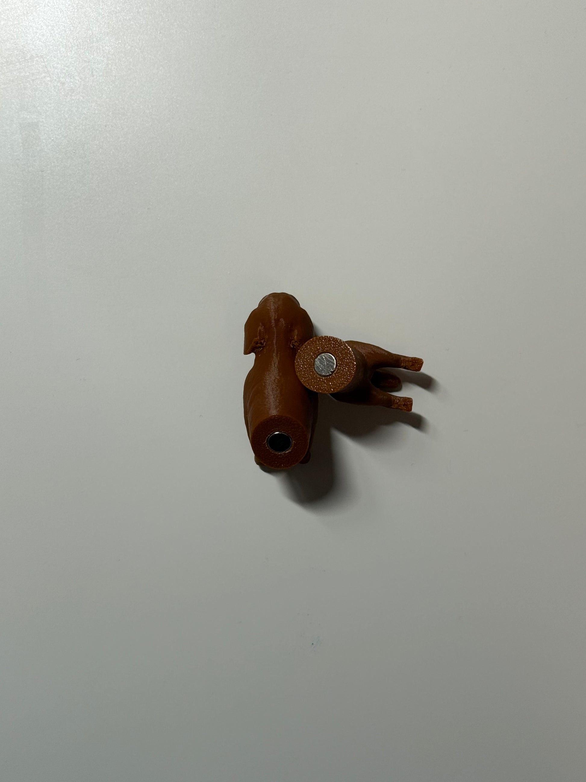 Unsere kleine Dackel Figur dient gleichzeitig auch als zwei Magneten 😍