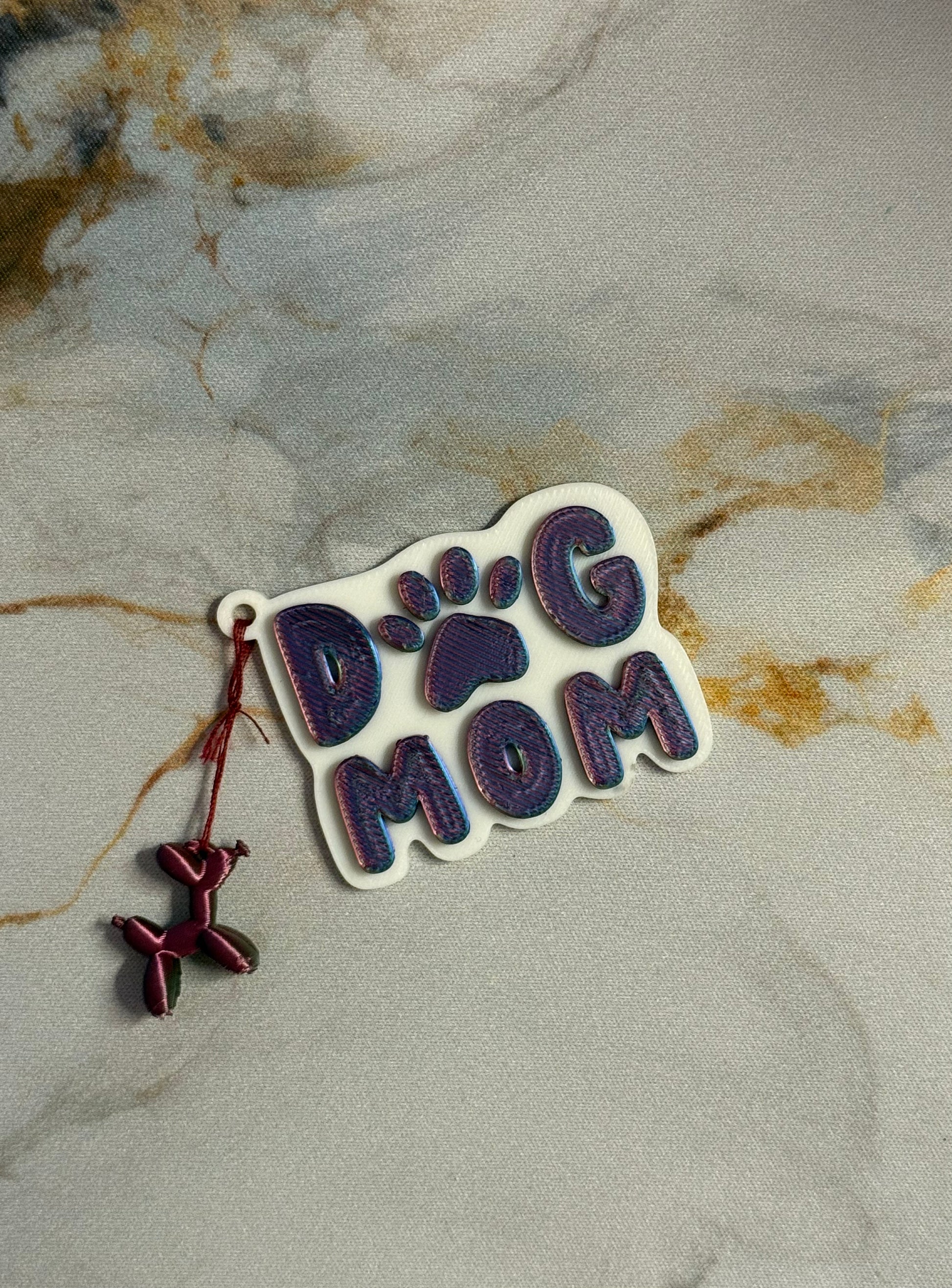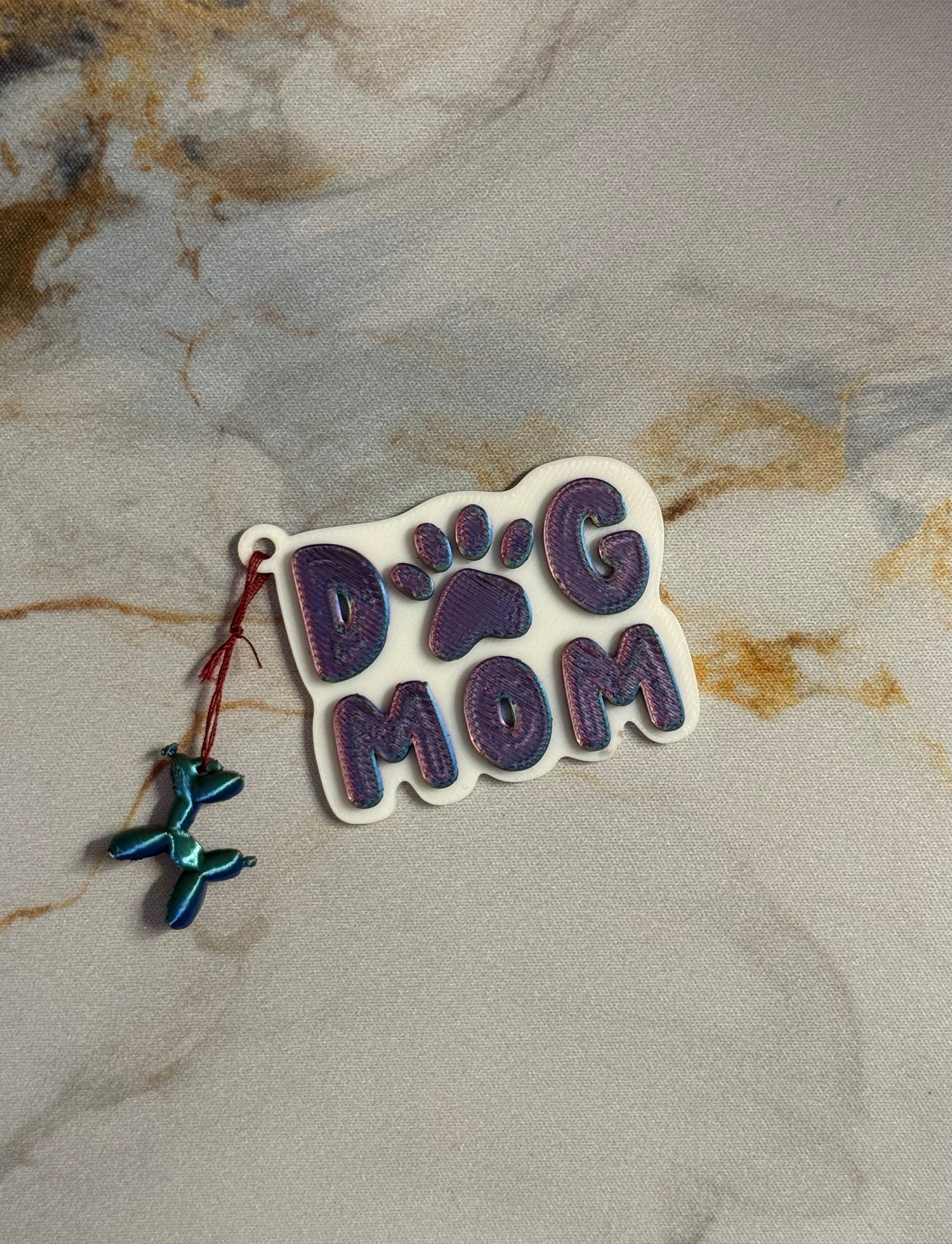 Der Schriftzug „Dog Mom“ wird von einem süßen Ballonhund-Anhänger begleitet